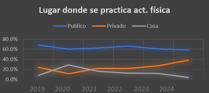 También se puede deducir que las personas que no realizan actividad física puede ser por motivos de su empleo, falta de tiempo, entre otros. Lo que queremos dar a entender es que realmente se puede realizar actividad fisica sin importar el lugar, el entorno o el tiempo disponible y realmente este hábito a largo plazo puede beneficiar a los individuos a mejorar y prolongar una buena calidad de vida.