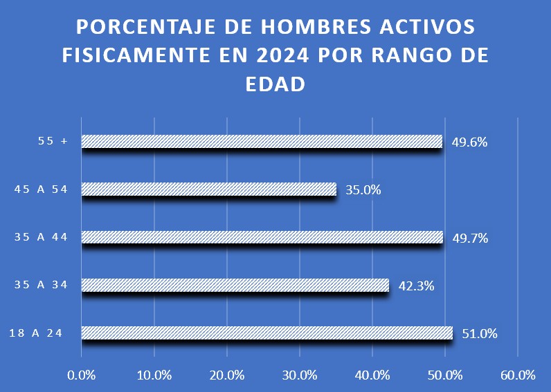 Con estos datos queda evidenciado que realmente dentro de todos los rangos de edad al rededor del 50% de la población tanto hombres como mujeres son activos físicamente, con un objetivo mayoritariamente de salud y practicando esta actividad fisica en lugares publicos.